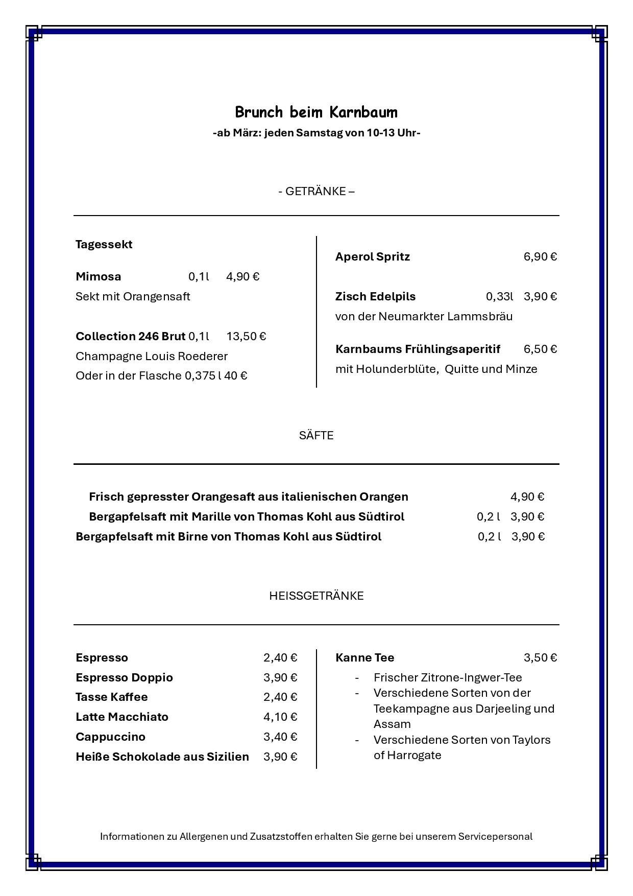 Liebe Gäste, ab März 2026 gibt’s in unserem Bistro immer samstags von 10-13 Uhr einen Brunch